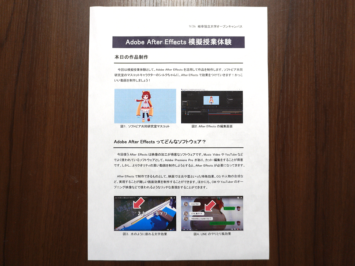 今後のAfter Effectsを用いた講義の開講に合わせ、高校生向けの模擬授業体験を行うことになりました。